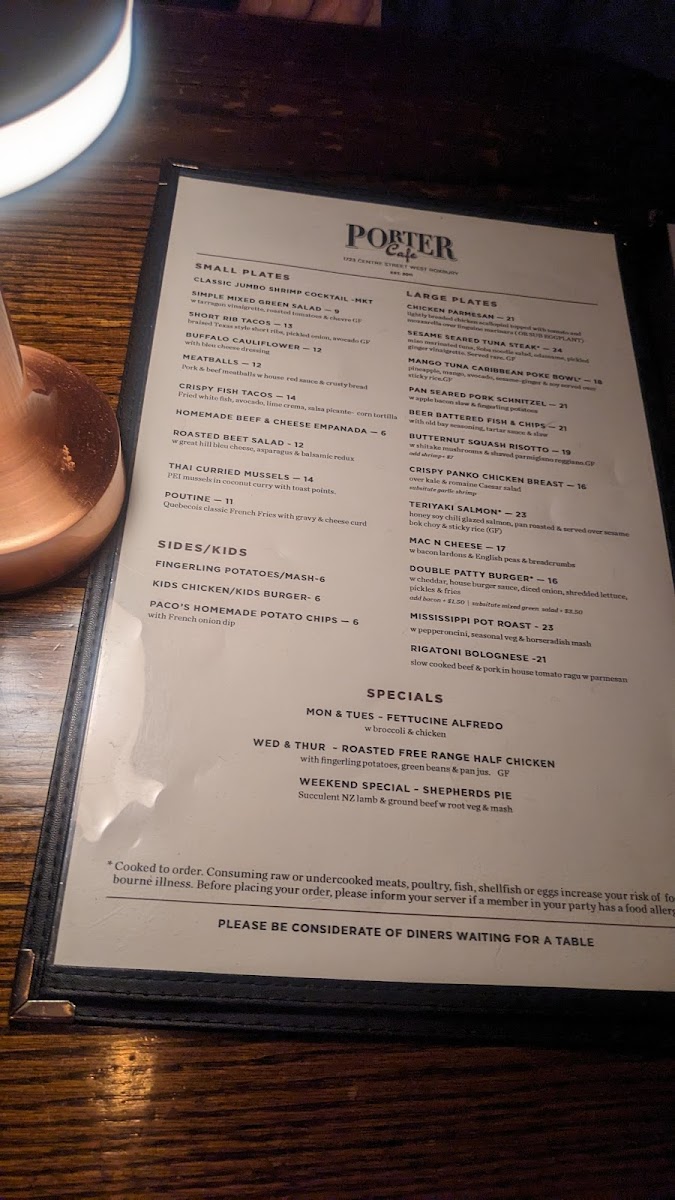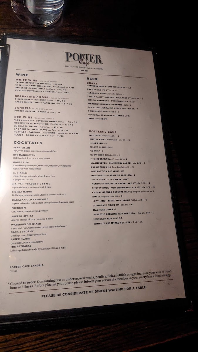 The drink selection is just as impressive, featuring refreshing cocktails like the watermelon cocktail that are reasonably priced. Regulars highlight the friendly service provided by the attentive bartenders, which adds to the cafe's charm. Whether you're stopping by for a quick bite or settling in for a leisurely meal, Porter Cafe promises excellent food and a warm, welcoming environment.
